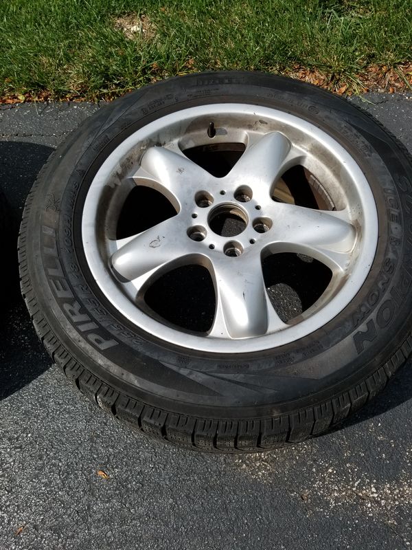 235/65/r17 goodyear all season tires m+s on original bmw rims(good for x5) used only for one season 3 month, thread is at 95% very gently drown on and they pirelli winter snow sport 205 55 r16 91h selling winter tires and oem bmw rims.